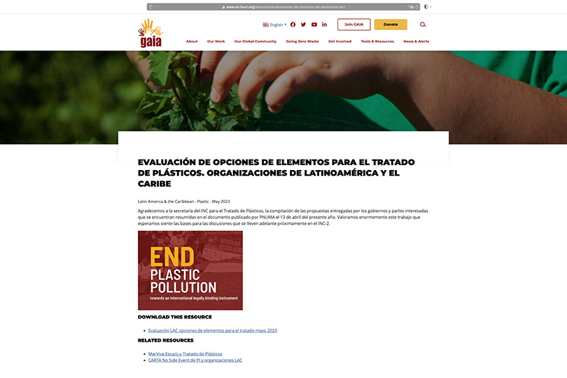 Avaliação de organizações da América Latina em relação ao documento de opções de elementos para o tratado de plásticos